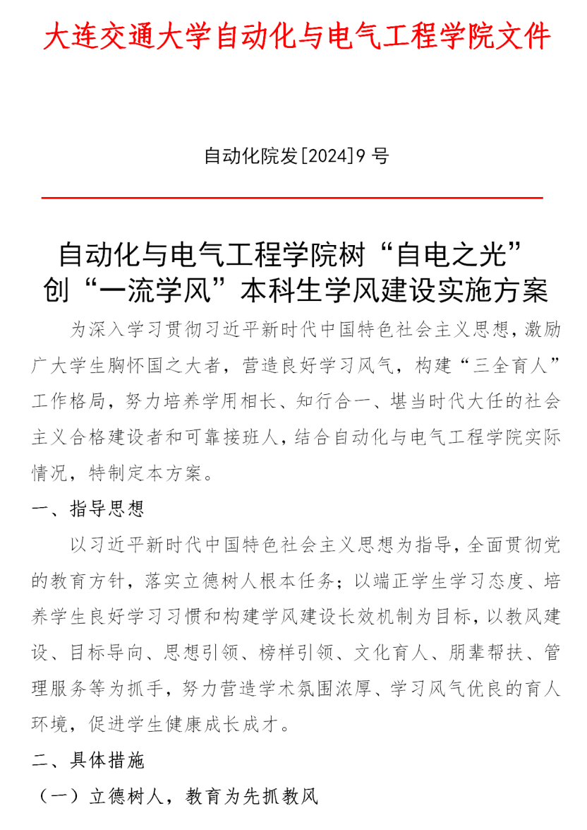 树“自电之光”创“一流学风”本科生学风建设实施方案》,以端正学生学习态度、培养学生良好学习习惯和构建学风建设长效机制为目标,以教风建设、目标导向、思想引领、榜样引领、文化育人、朋辈帮扶、管理服务等为抓手,努力营造学术氛围浓厚、学习风气优良的育人环境,促进学生健康成长成才。