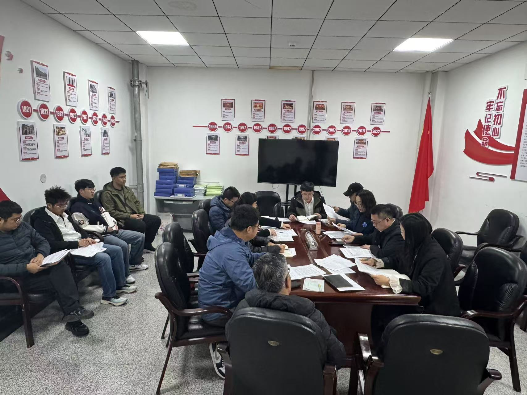 党委进行理论学习中心组学习,会议由党委书记叶凯主持,中心组成员、党委委员、党支部书记、组织员出席会议。