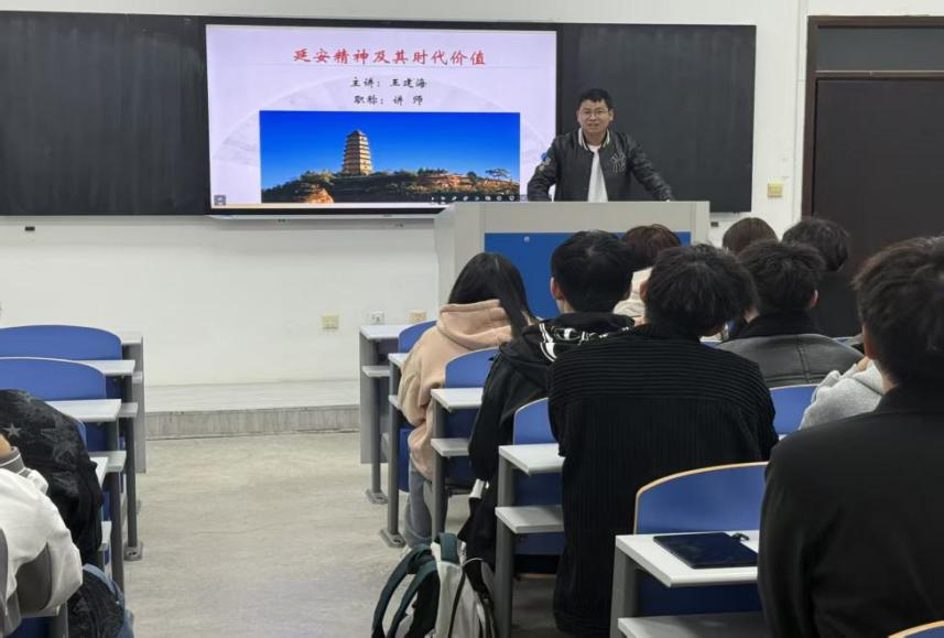 2023级辅导员王建海主讲“延安精神及其时代价值”。他结合自己赴延安学习经历和感受,重点讲授了延安精神的形成条件、主要内容与时代价值,解读了“坚定正确的政治方向”“解放思想、实事求是”“全心全意为人民服务”“自力更生、艰苦奋斗”四大核心内涵。切实提升了学员对延安精神时代价值的认知。